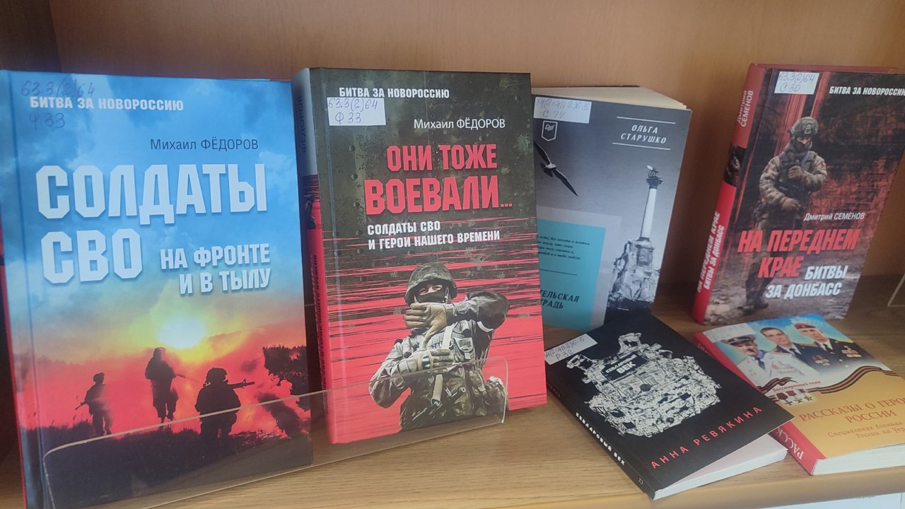 На старшем абонементе Томской областной детско-юношеской библиотеки действует постоянная книжная выставка «Беречь Россию не устану», на которой представлены печатные издания с информацией о ходе СВО.